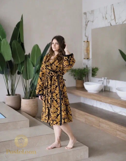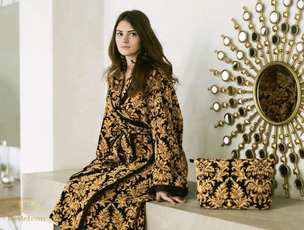 Мотив для украшения халата Sanssouci - золотистые восточные узоры с цветочными мотивами.