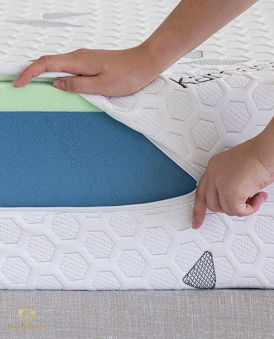 Внутренний блок матраса изготовлен из двух видов пены: пены Memory Foam® и пены HR®. Пена Memory Foam® адаптируется к форме тела спящего и обеспечивает дополнительную поддержку, а пена HR® обеспечивает необходимую жесткость матраса.