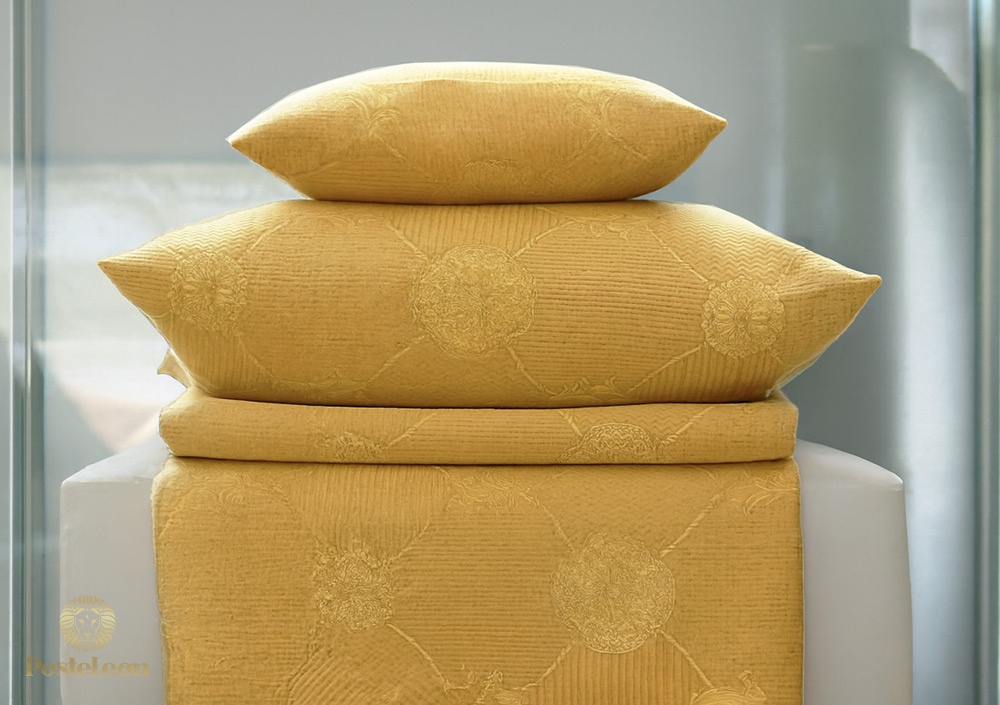 - Цвет/Дизайн: горчичный, однотонный с фактурным узором;