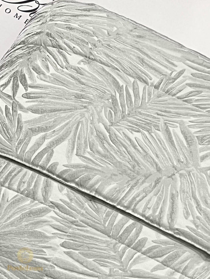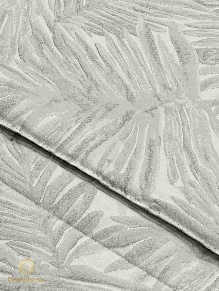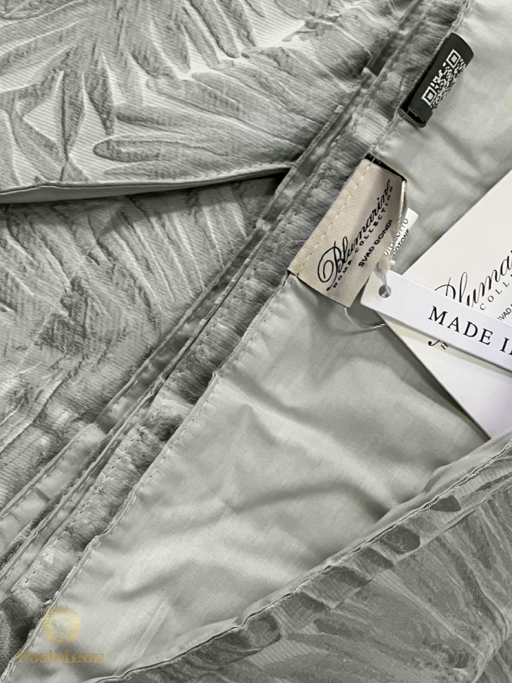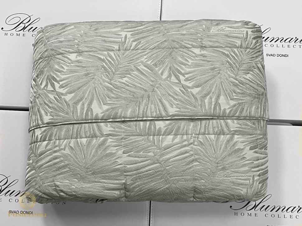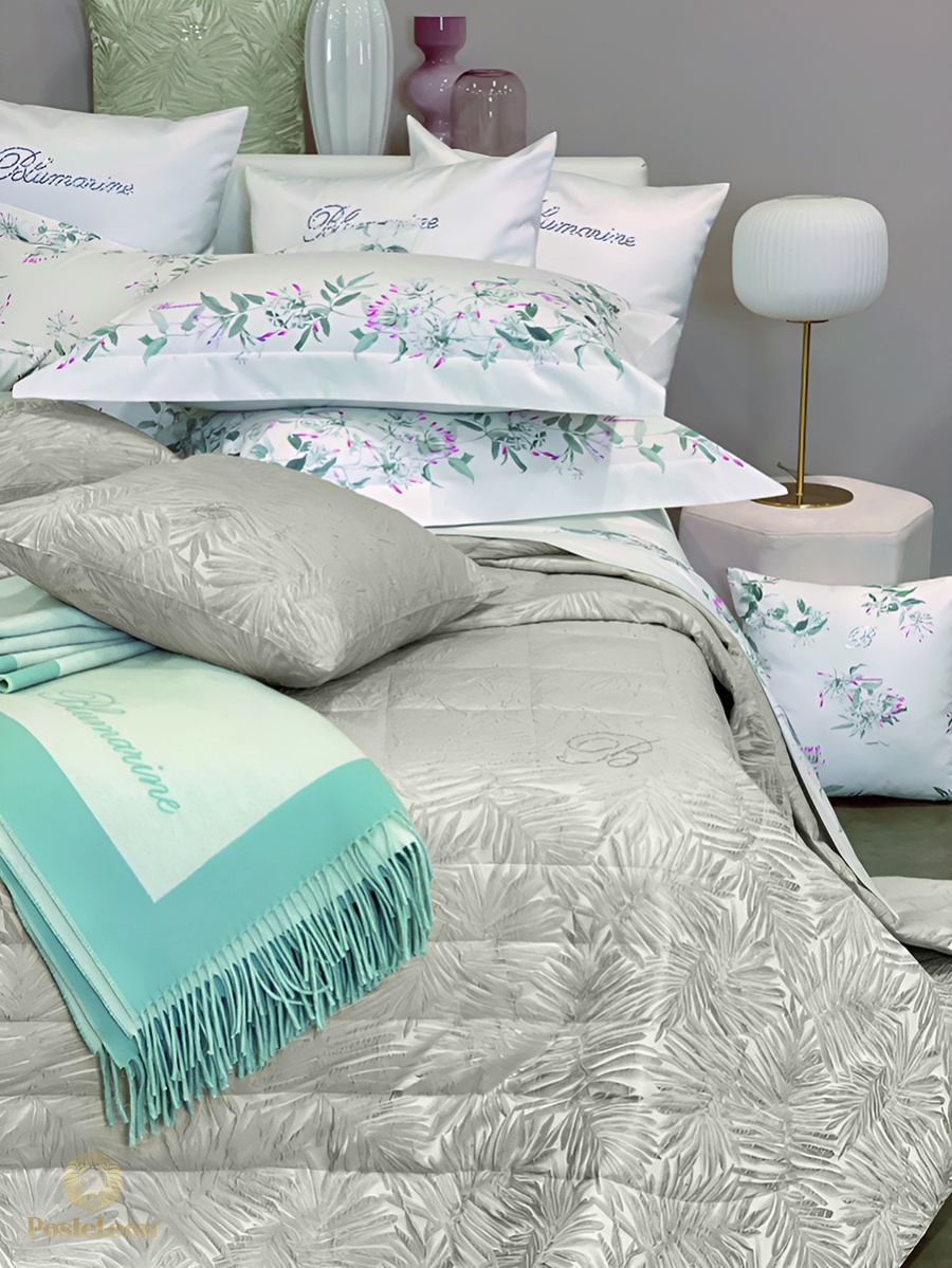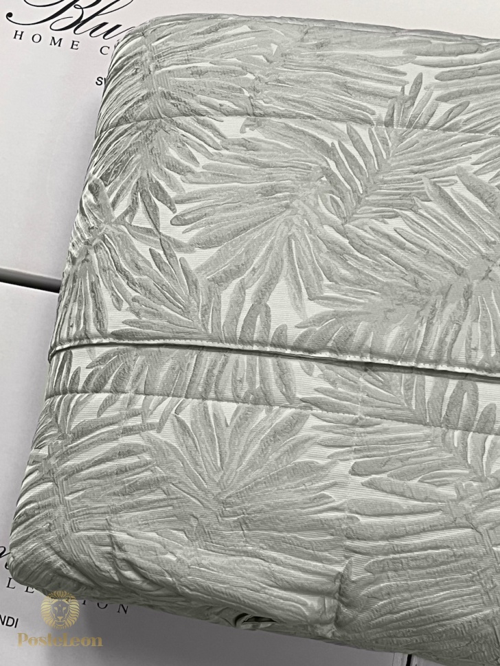 Эффектное стеганое покрывало Blumarine серого цвета с бирюзовым оттенком. Покрывало для двуспальной кровати из жаккарда.