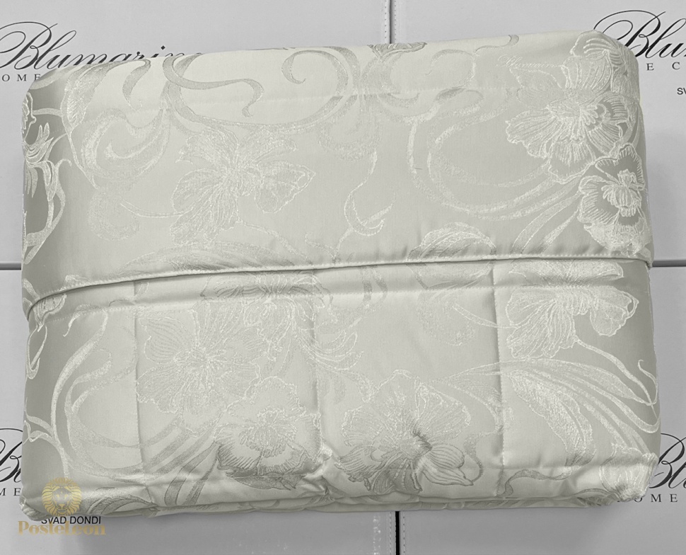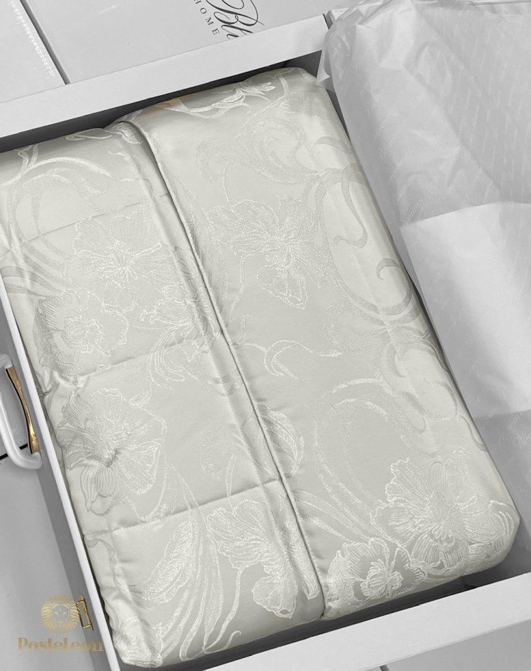 Коллекция Blumarine осень-зима 2025-2026! Очень красивое стеганое покрывало для двуспальной кровати из жаккарда с люрексом, украшено логотипом Blumarine и закруглёнными углами.