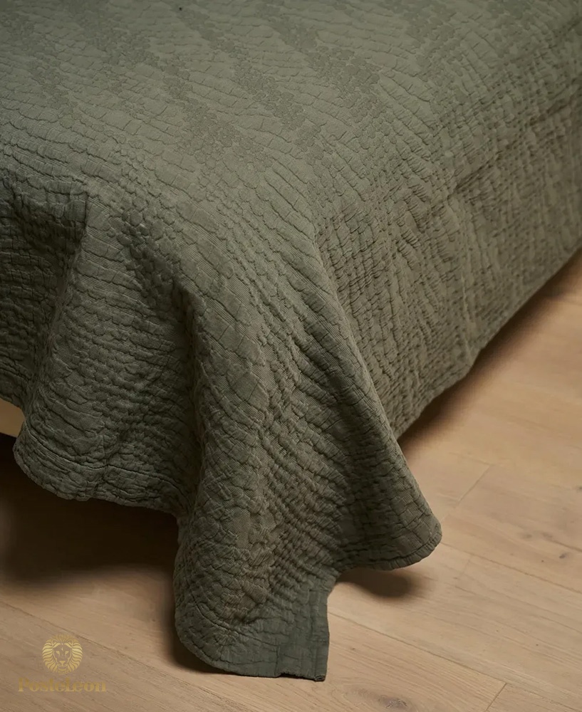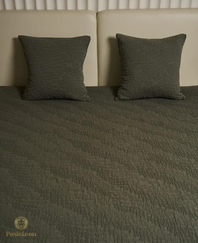 Тонкое покрывало из хлопка Tree Bark от Luxberry имеет дизайн темно-зеленого цвета хаки, для создания стильного штриха в интерьере. Дизайн повторяет рельеф коры дерева, объемная фактура создает потрясающий 3D-эффект и тактильное удовольствие.