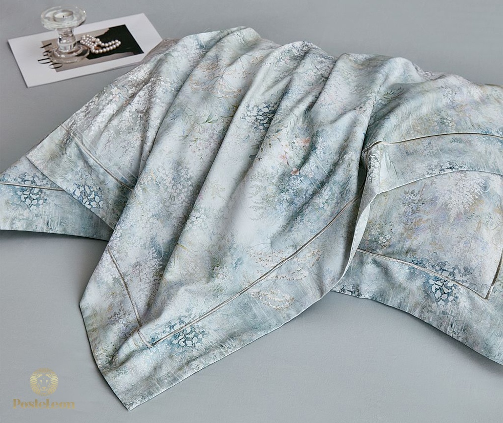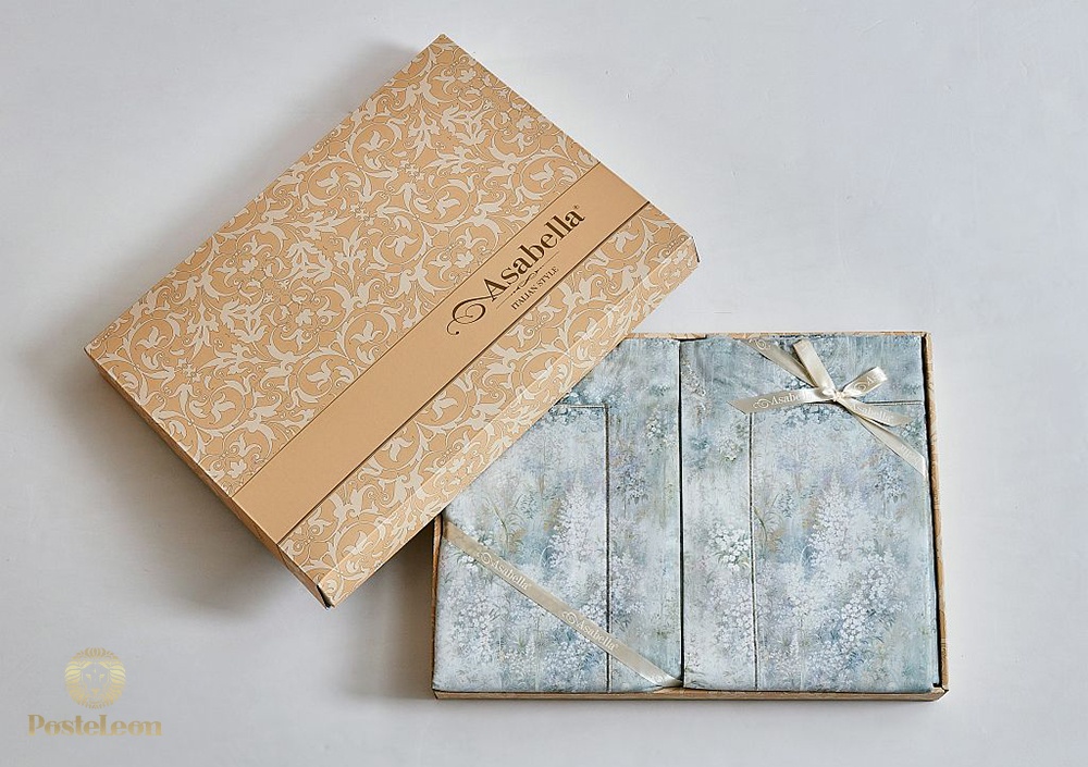 Пододеяльник этого КПБ Asabella застёгивается на молнию, наволочки - с клапаном. Комплект упакован в фирменную подарочную коробку и вложен в фирменный пакет Asabella.