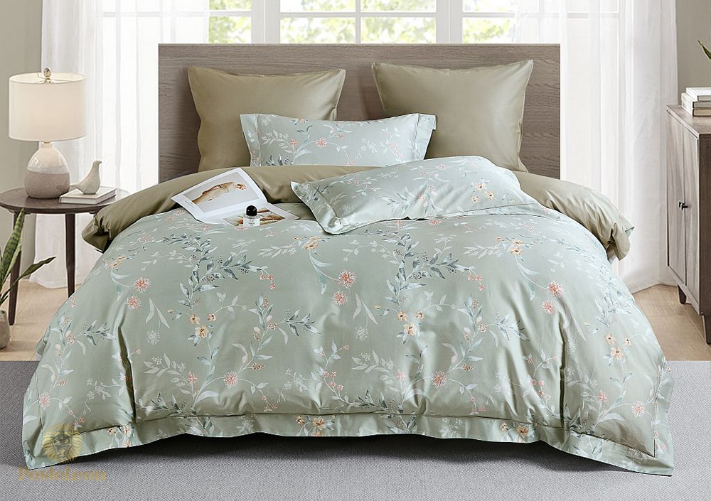 Дизайн данного комплекта постельного белья представляет из растительный узор на сером фоне.
