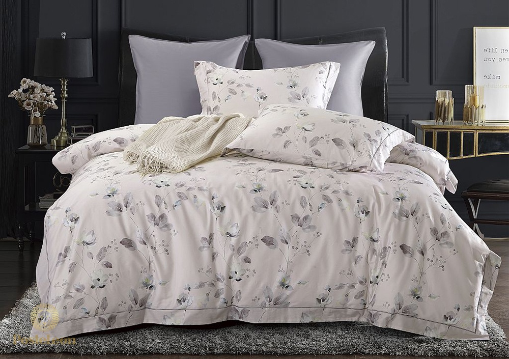 Дизайн данного комплекта постельного белья представляет из растительный узор на фоне кремового цвета.