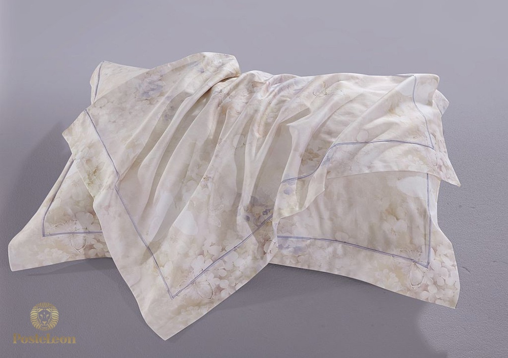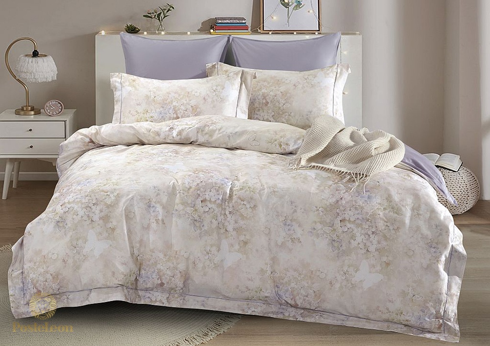 Дизайн данного комплекта постельного белья представляет из растительный узор на бежевом фоне.