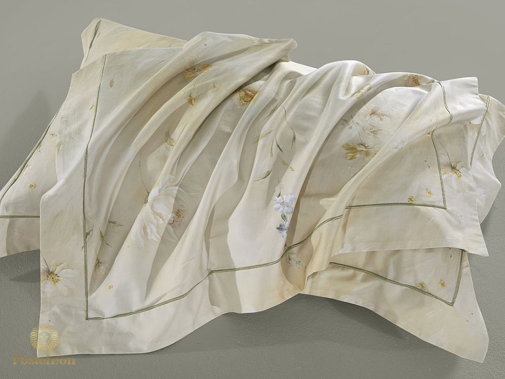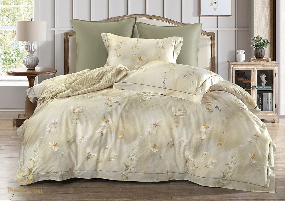 Дизайн данного комплекта постельного белья представляет из себя растительный узор на бежевом фоне.