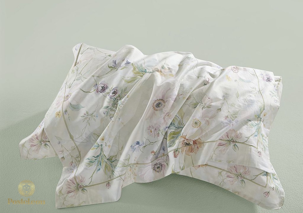 Постельное белье из хлопка-сатина: очень приятный к телу и износостойкий двуспальный комплект. Печатный сатин с новой технологией компьютерной печати, которая не выцветает, не линяет. Дизайн комплекта представляет собой цветы на бледно-зеленом фоне