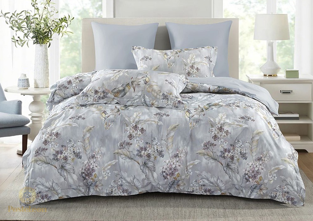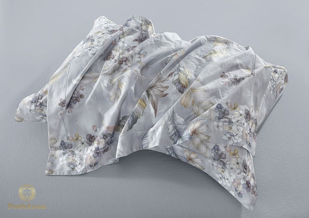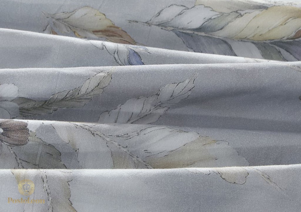 Постельное белье из хлопка-сатина: очень приятный к телу и износостойкий двуспальный комплект. Печатный сатин с новой технологией компьютерной печати, которая не выцветает, не линяет. Дизайн комплекта представляет собой растительный узор на сером фоне.