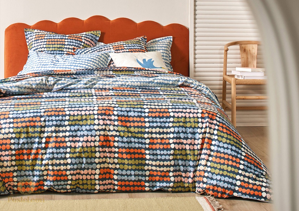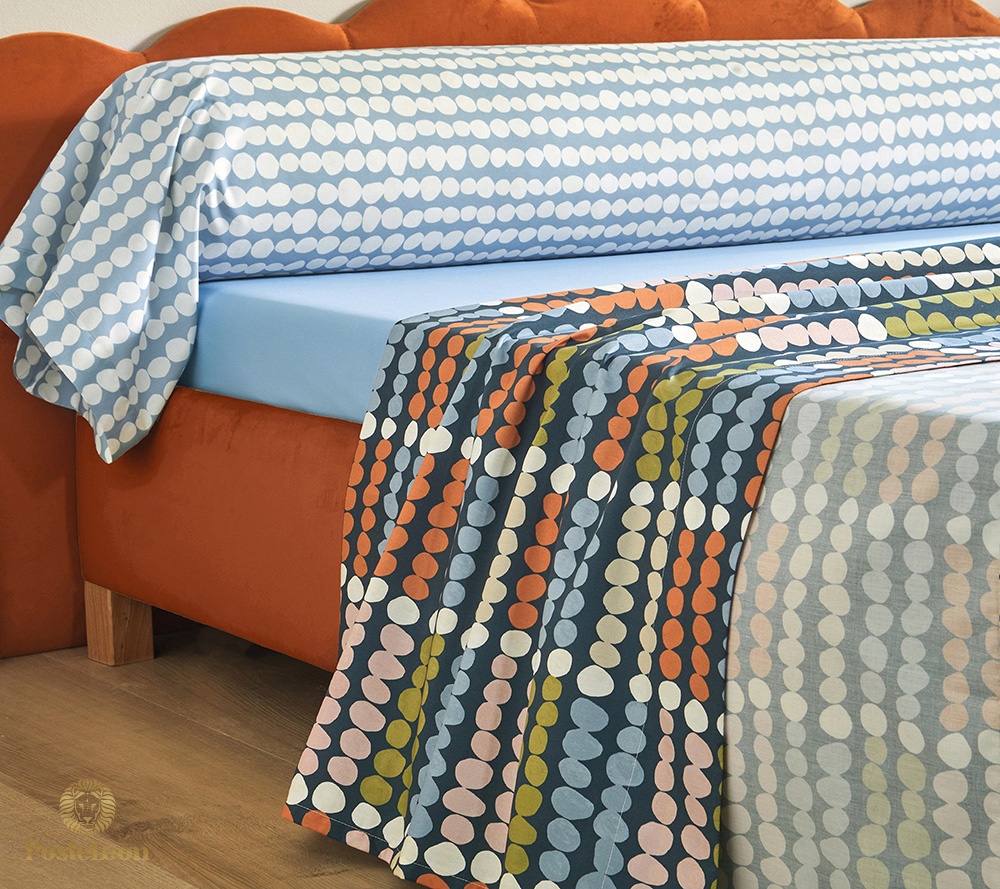 Комплект постельного белья в Dots Celeste привнесет нотку свежести и игривости в вашу спальню благодаря ритмичному графическому рисунку и мягким актуальным цветам. Сделанный из перкаля из 100% длинноволокнистого хлопка, он сочетает в себе комфорт, мягкость и прочность для приятных и продолжительных ночей. Его структурированный дизайн и современная палитра делают его эффектным изделием, которое легко интегрировать в различные декоративные элементы: от современного до самого классического стиля.
