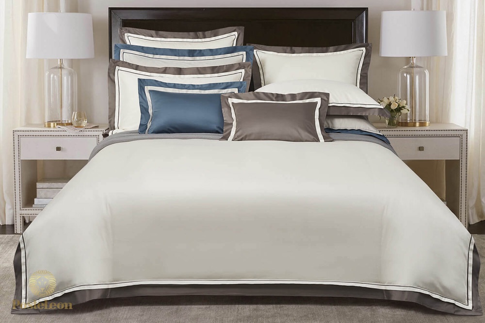 Коллекция однотонного постельного белья Psihea выполнена в кремовом цвете с декором цвета маренго, сумеречно-серого и цвета топленого молока. Наволочки выполнены в дизайне «оксфорд», с 7-ти сантиметровыми ушками по периметру.