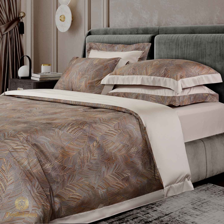 Комплект постельного белья Verona это по настоящему райское наслаждение. Основной мотив комплекта – растительный узор на коричневом фоне. Оборотная сторона комплекта выполнена в приятном бежевом цвете.