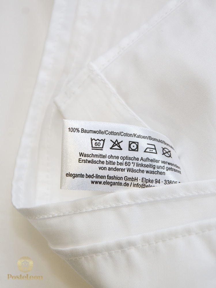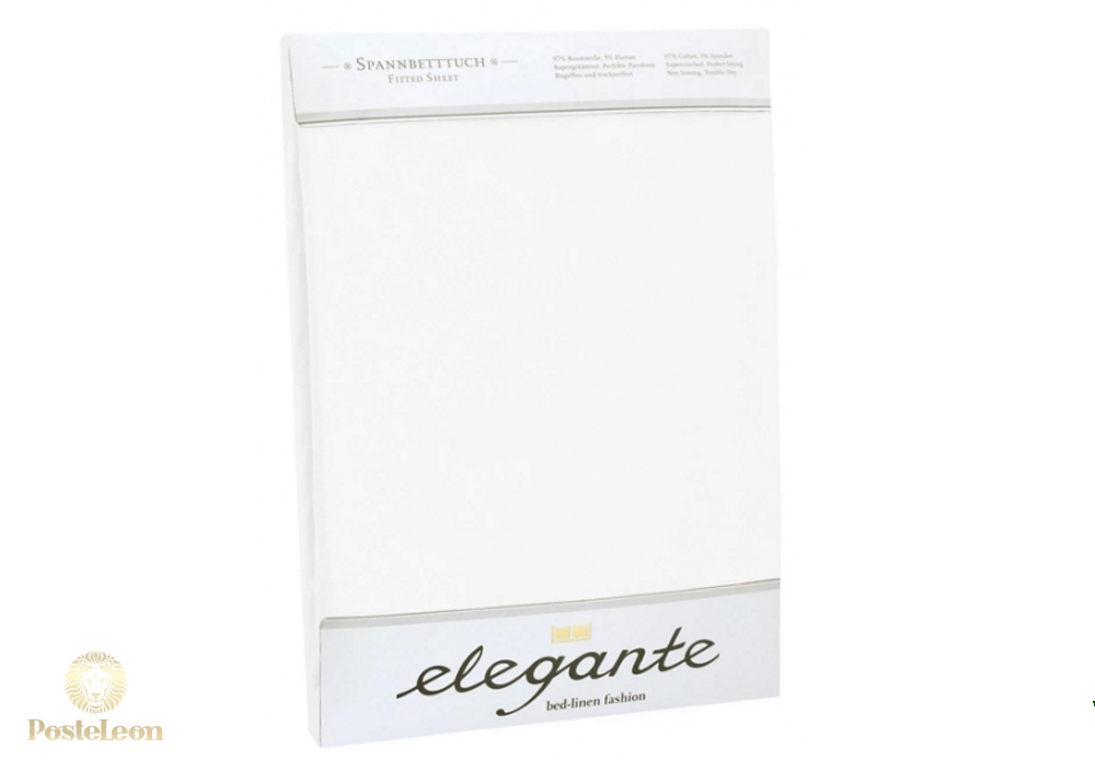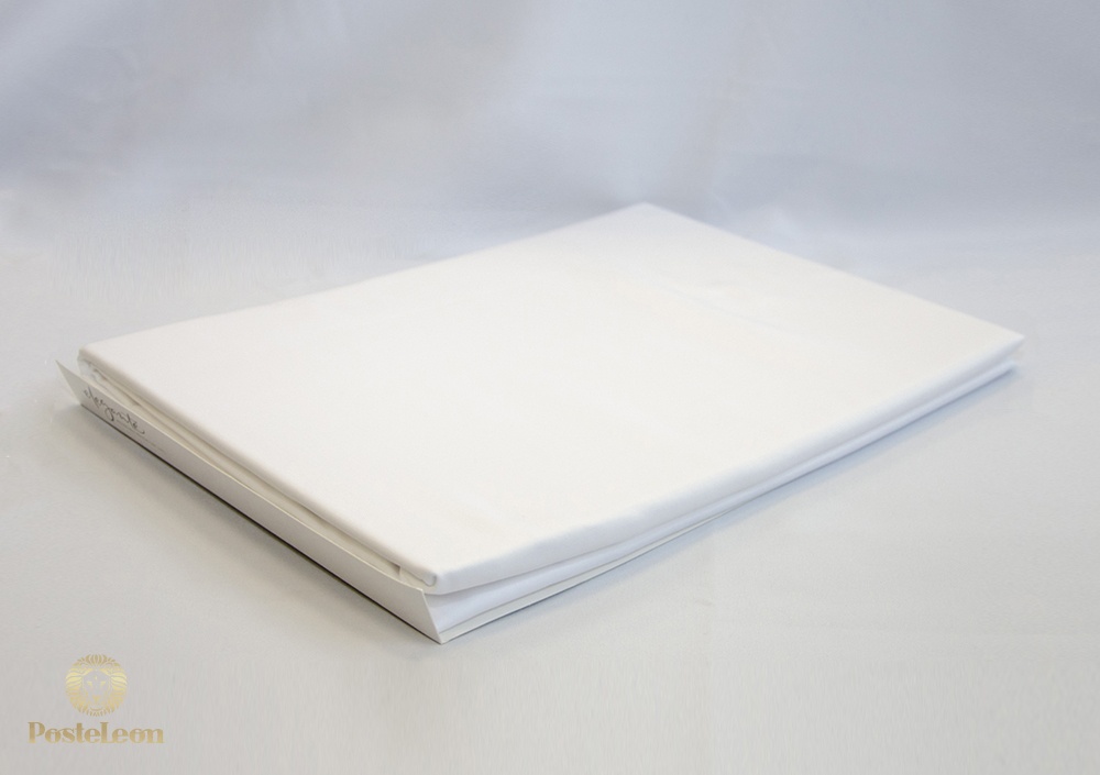 Прямая хлопковая простыня к комплектам Elegante белого цвета. Гладкая ткань с эффектом шелка, обработка хлопчатобумажной ткани щелочью для придания шелковистого блеска.