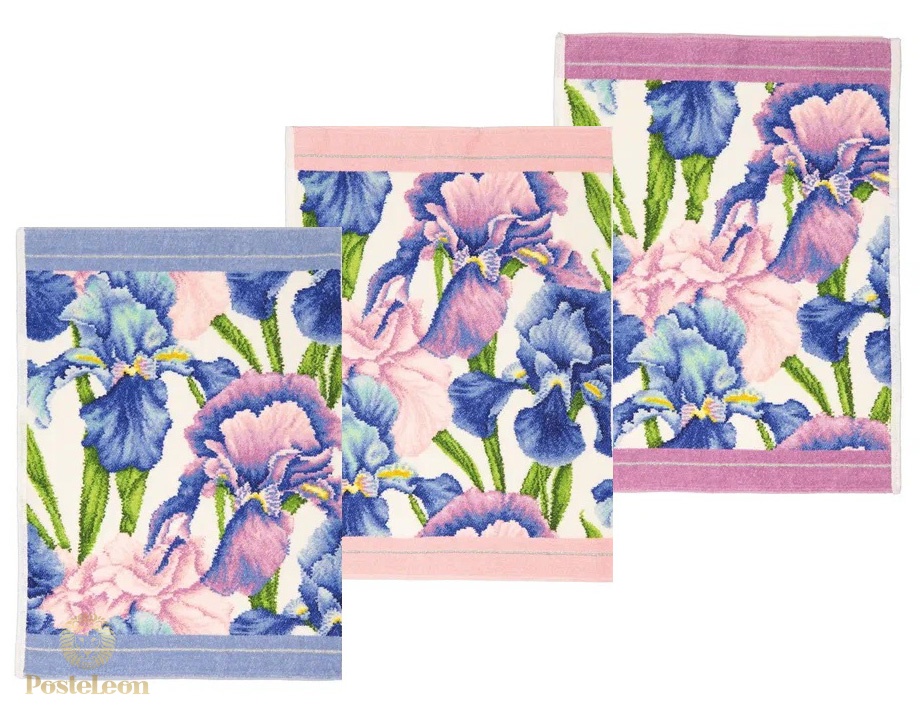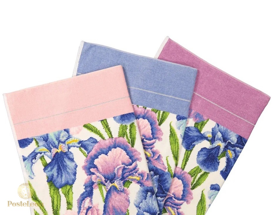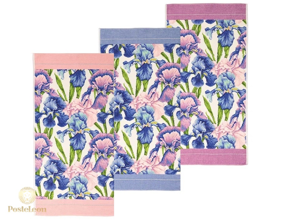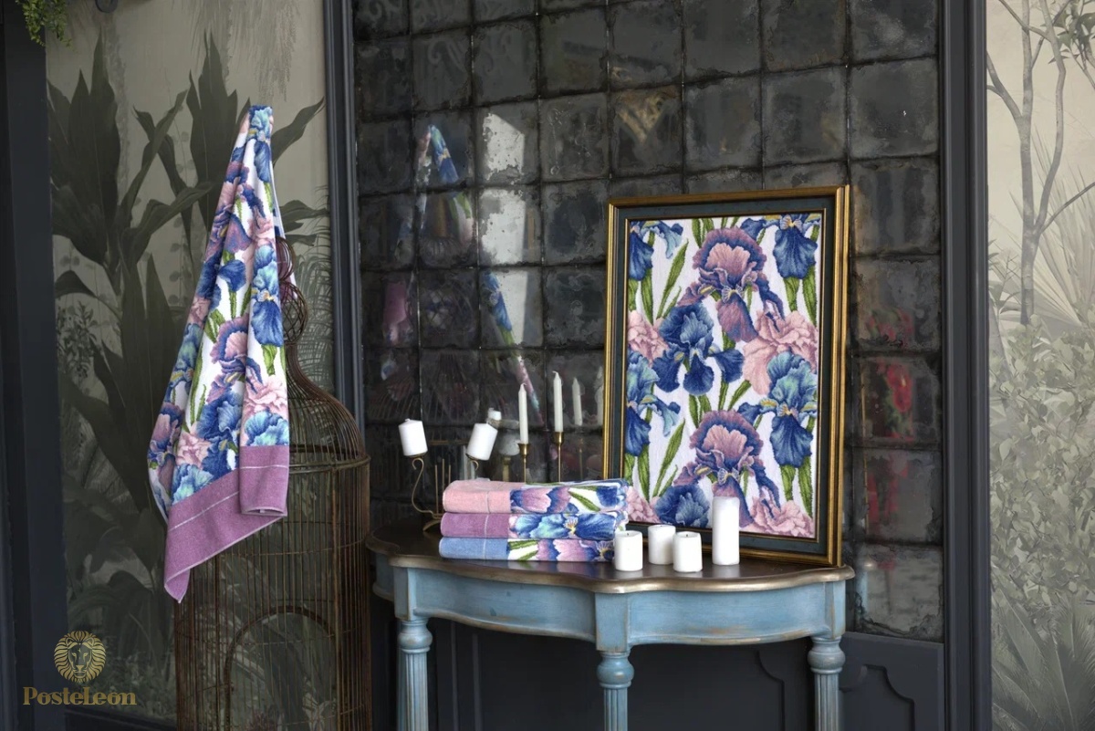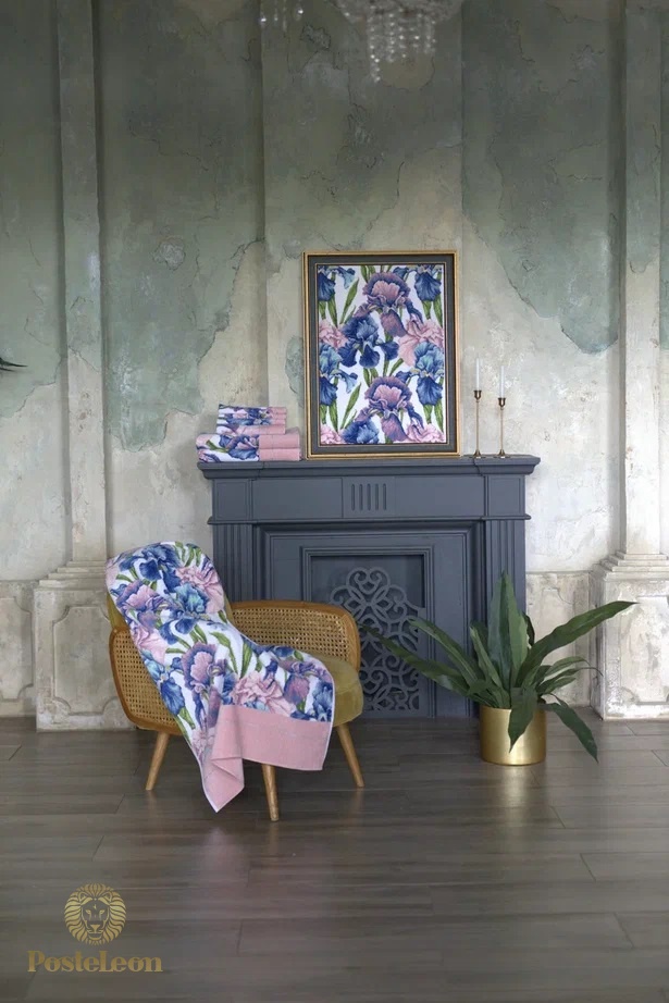 Полотенце из хлопка-шенилла Gilette. Полотно полотенца выткано крупными цветами, основной тон полотенца лавандовый.