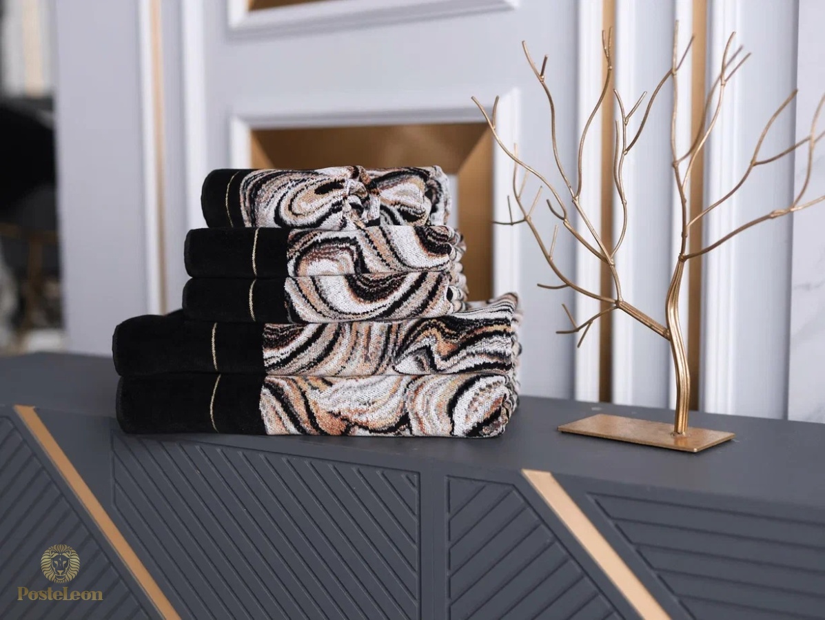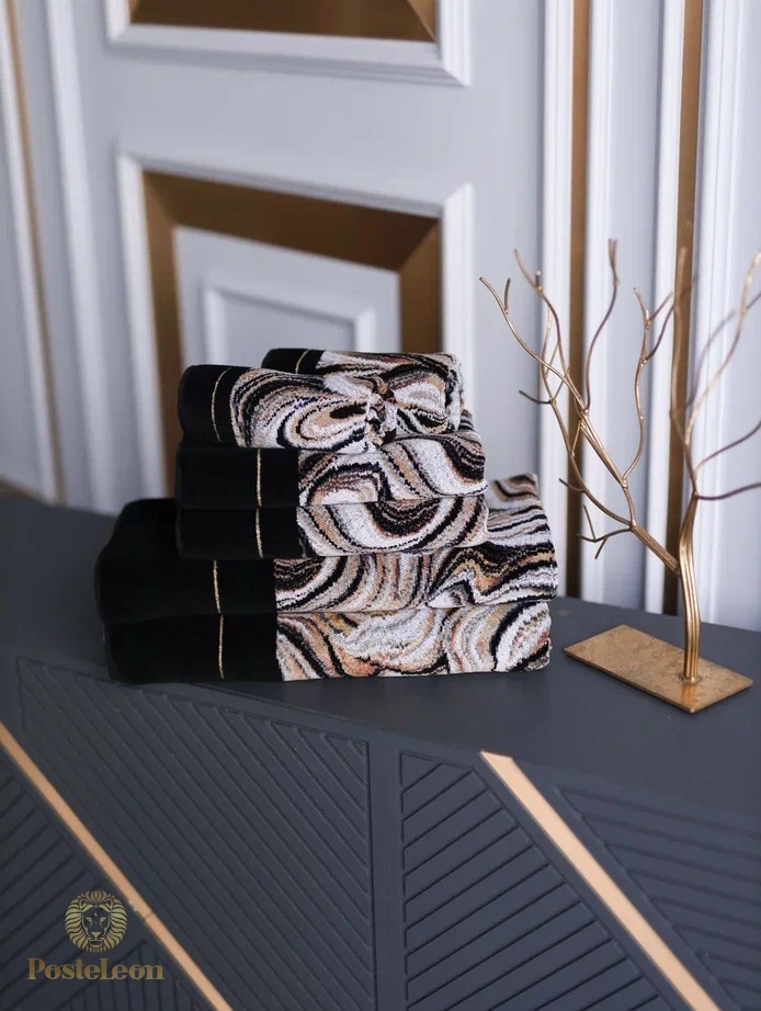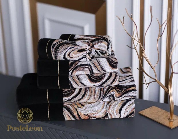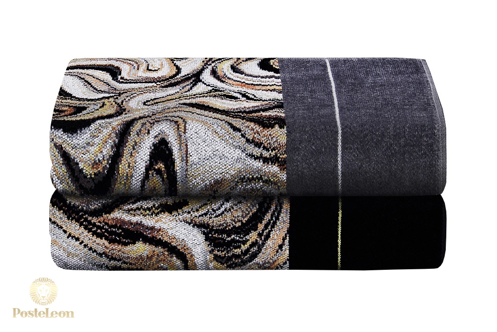 Маленькое полотенце из пестротканого шенилла Murani Nero в черном или сером сланцевом цвете.